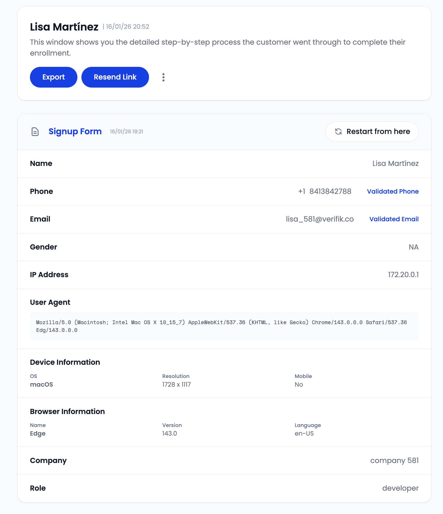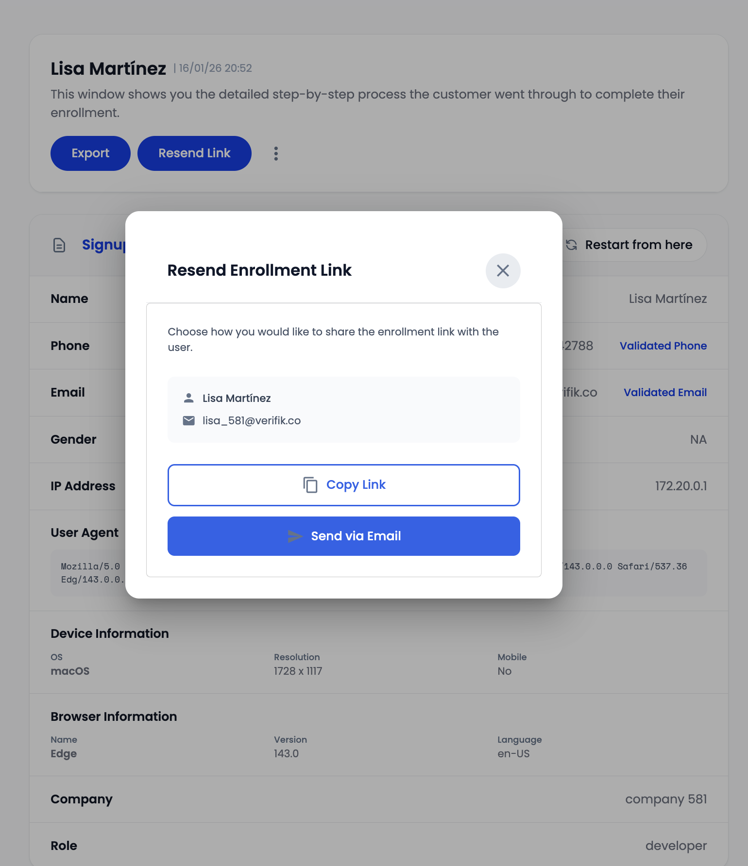 Administrators can resend enrollment links to users who may not have completed the process or need to restart their verification.