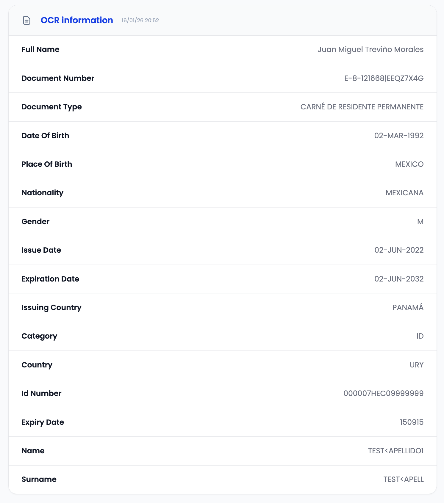 Review uploaded documents, OCR extraction results, and document validation status for each user.