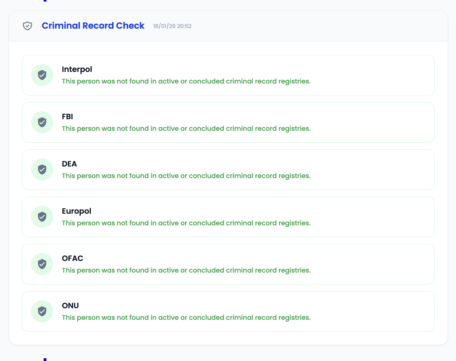 Make informed decisions on user verifications with detailed scoring, comparison results, and background check information.