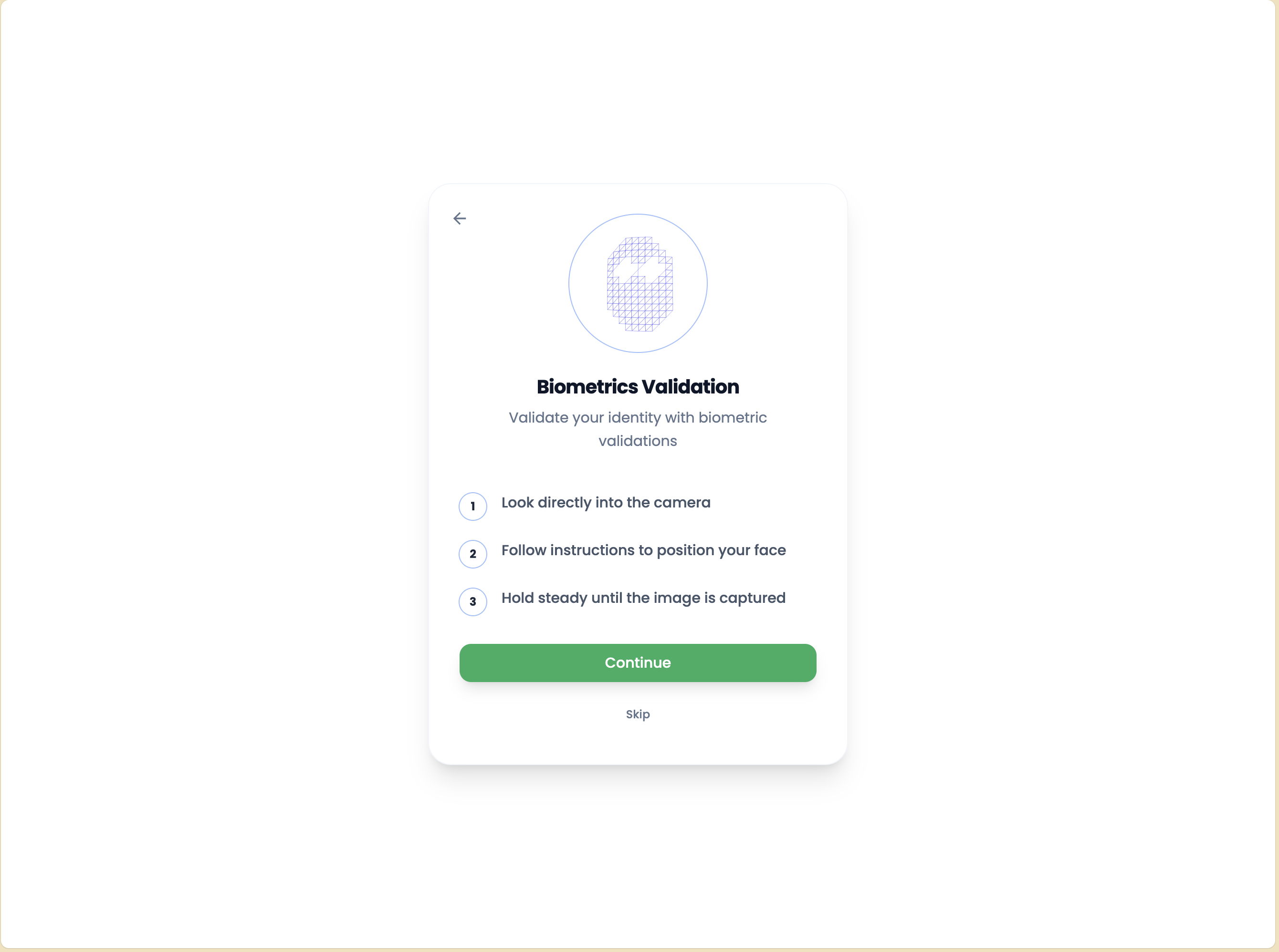 Before beginning the document and biometric verification process, users are presented with clear instructions on what to expect and how to prepare.