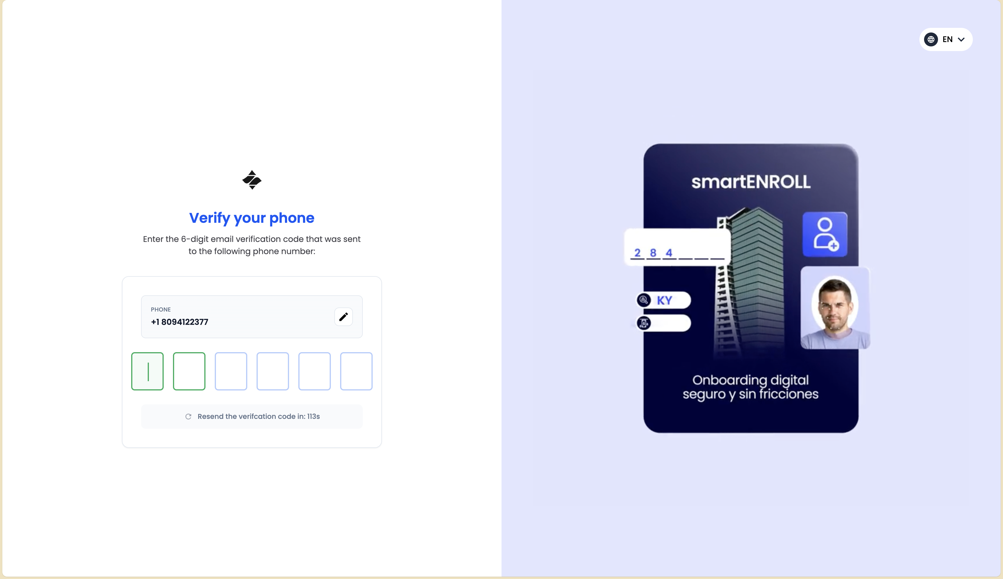 Once the email is verified, users proceed to phone verification.