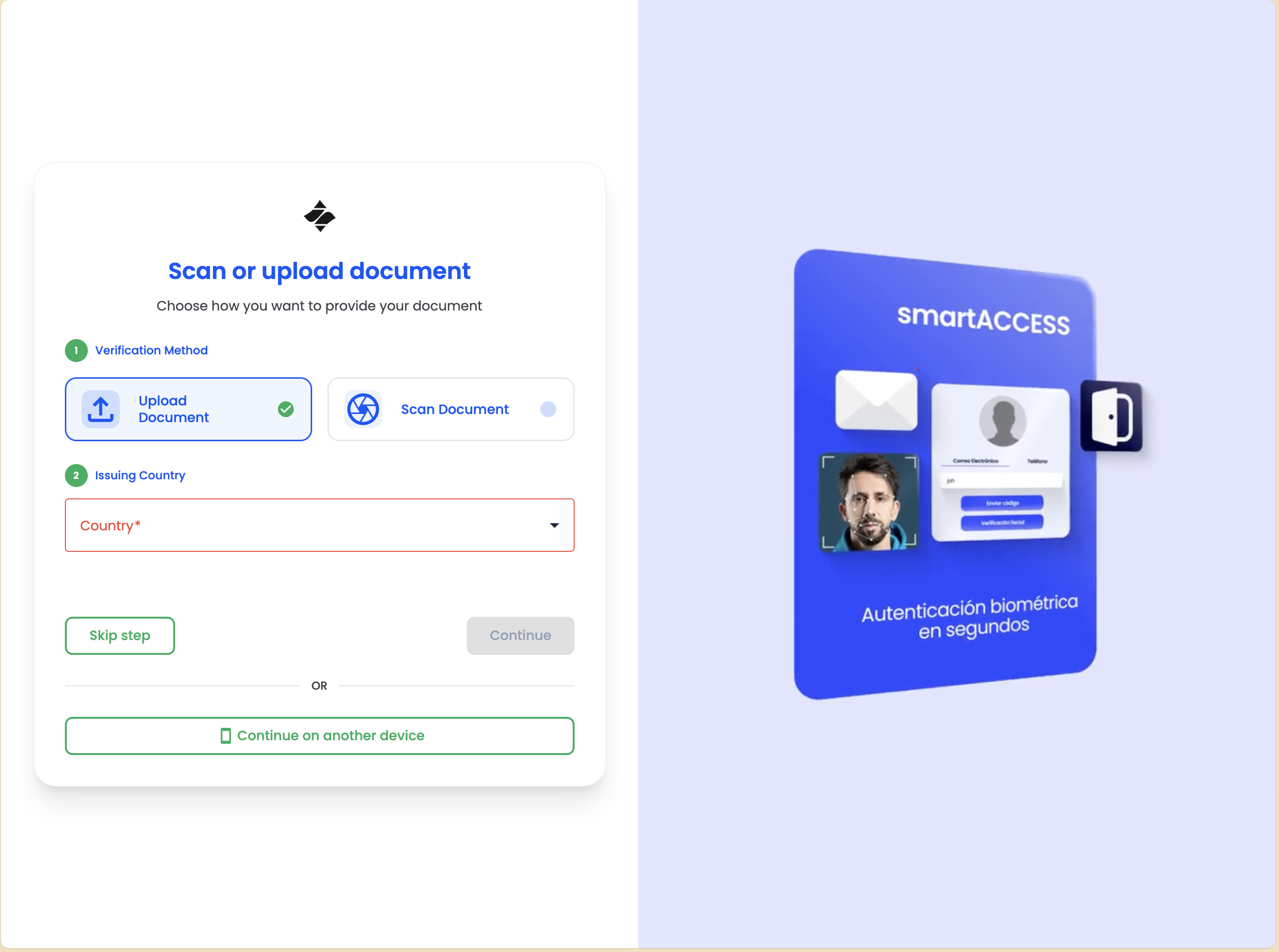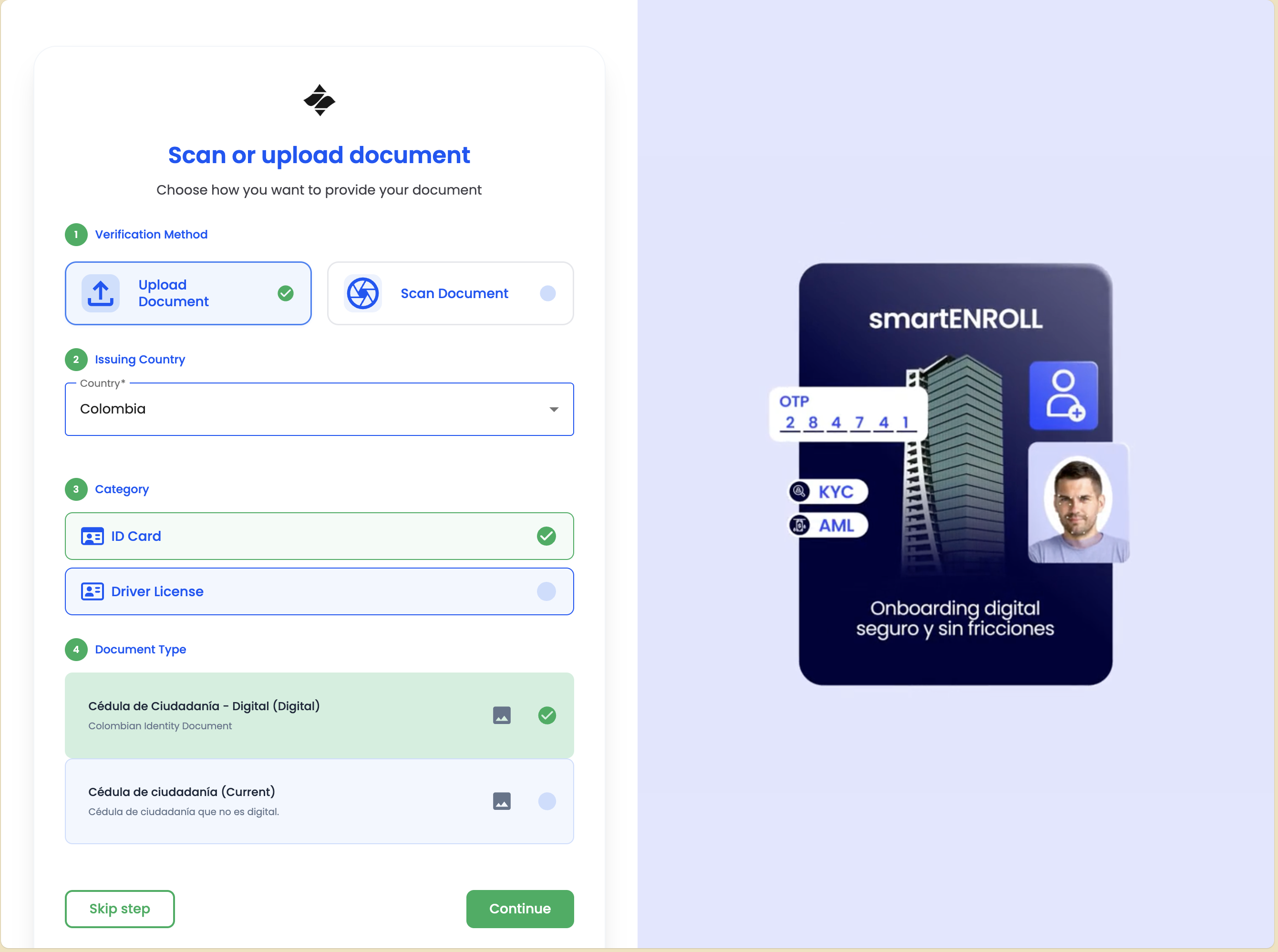 - Document Selection - Choose the type of identity document to verify